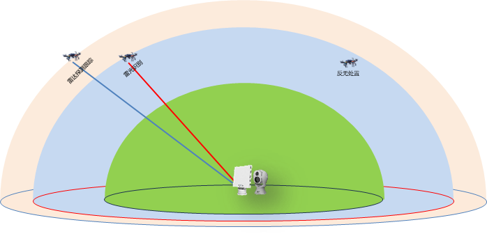系统雷达探测区、雷光识别区、处置作业区,皆远大于核心保护区,且监测盲区小,确保核心区安全。
